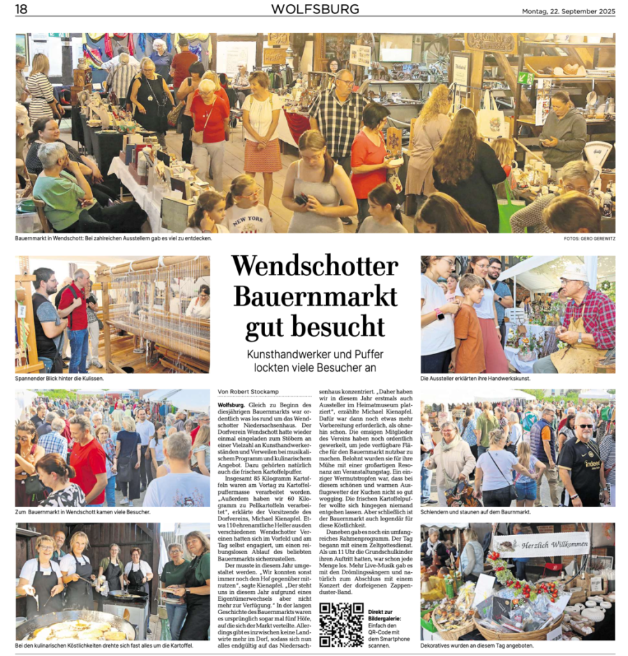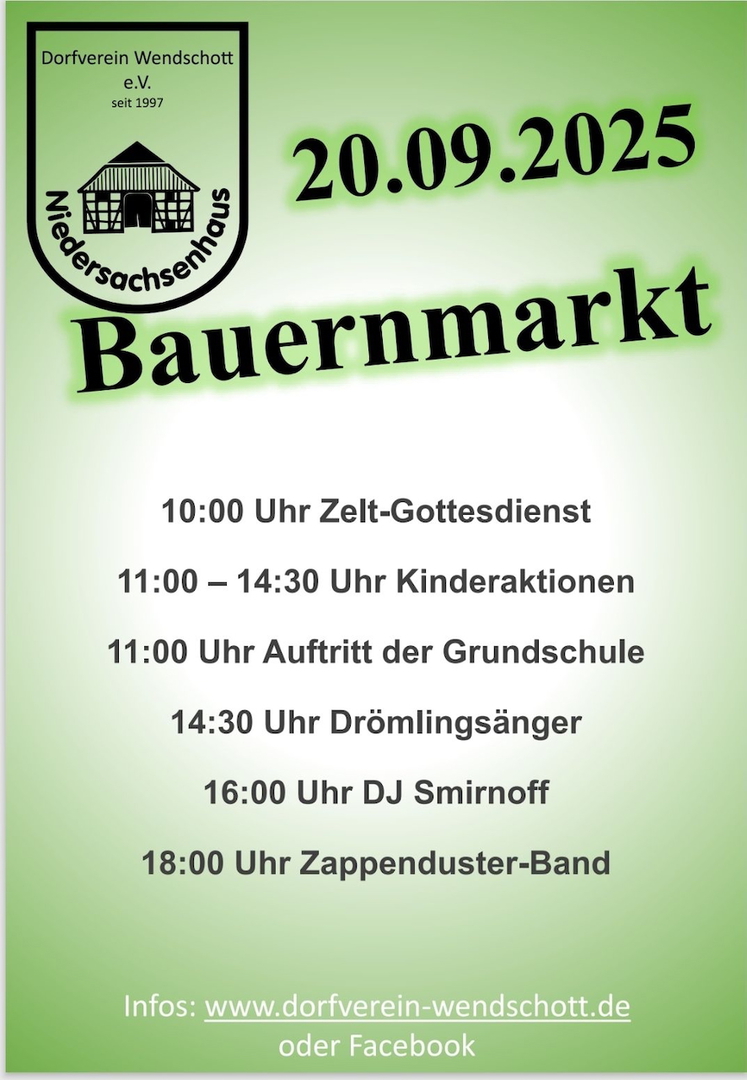 Am 20.09.2025 findet wieder der beliebte Bauernmarkt in Wendschott statt. Der Hof Bebenroth darf leider in diesem Jahr nicht mehr mit genutzt werden. „Dadurch wird es etwas kuscheliger am